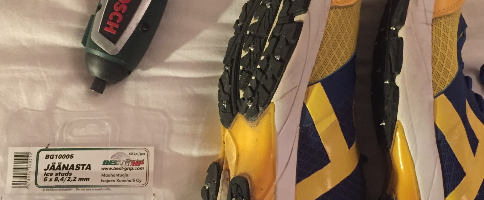 Eivät nastat tietenkään mustaa jäätä sulaksi vahaksi muuta, mutta nastat alla on silti vähän parempi fiilis juosta liukkaalla. Olennaisinta DIY-nastalenkkareissani onkin, että taas on yksi tekosyy ruksittu listalta pois.